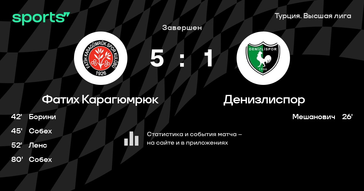 Фатих Карагюмрюк – Денизлиспор: Фатих Карагюмрюк побеждает в 3 последних очных матчах в турнире «Турция. Высшая лига»