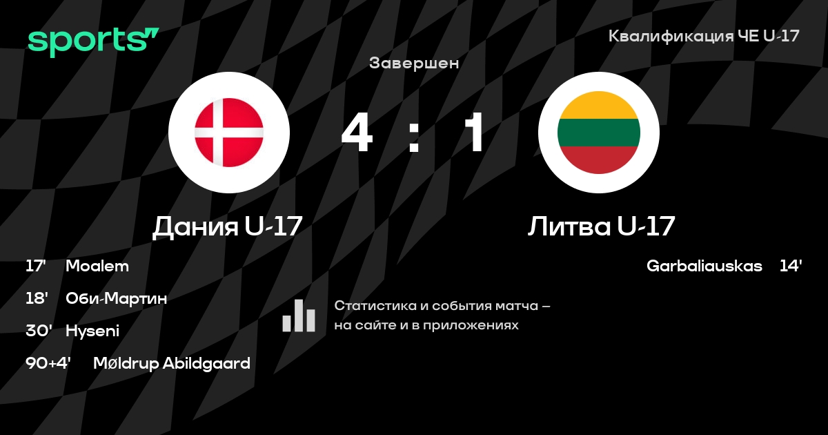 Дания U-17 - Литва U-17: статистика матча