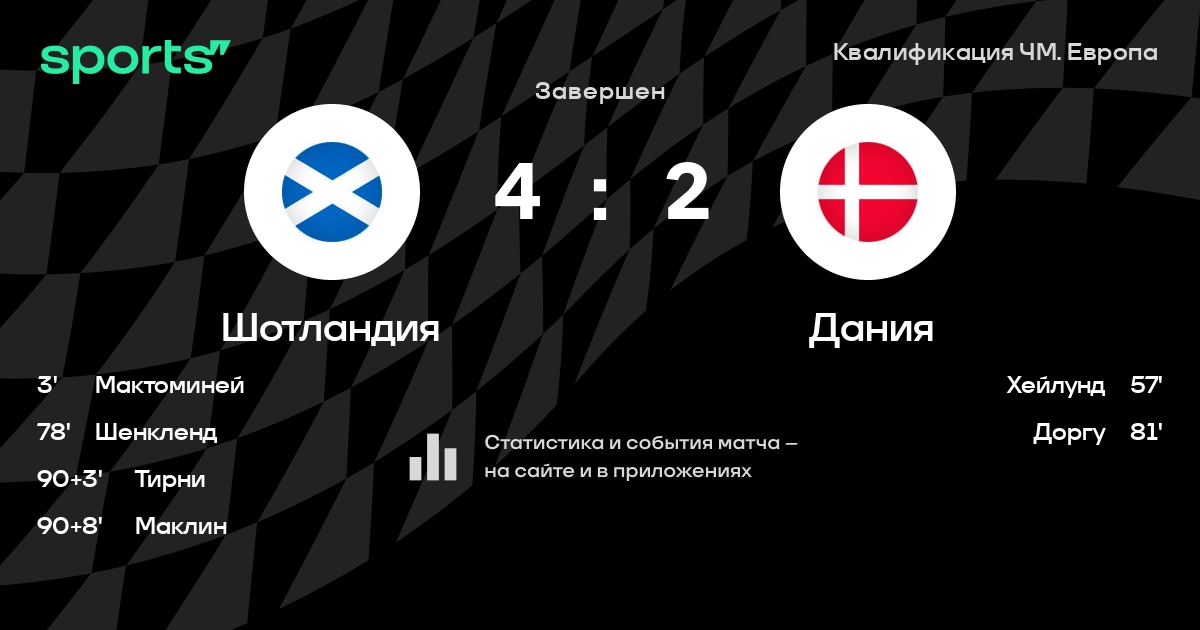 Квалификация ЧМ: шансы Шотландия – Дания победу в отборочном мате чемпионата мира 2026