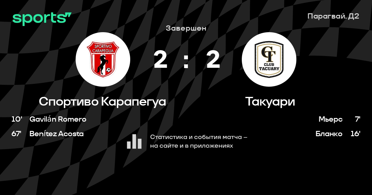 Спортиво Карапегуа – Такуари: Такуари забивает в 9 последних матчах против этого соперника
