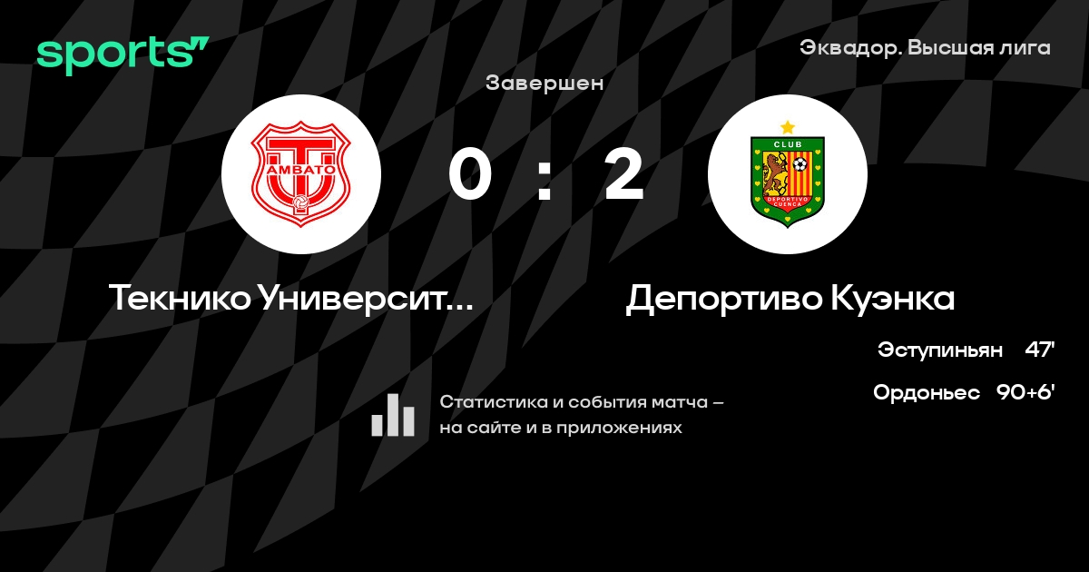 Результат прошлой игры в турнире «Серия A»: Индепендьенте дель Валье – Текнико Университарио 4:0. После 27 туров Текнико Университарио набирает 25 очков и занимает 14 место в турнире. Лучший бомбардир команды – Жан Бланко: он забил 4 в 12 матчах. Текнико Университарио проигрывает в 3 последних матчах в рамках турнира «Серия A». В 3 последних матчах в турнире «Серия A» Текнико Университарио обязательно забивает. Текнико Университарио пропускает в 3 последних матчах в турнире «Серия A». В последних 5 играх Текнико Университарио забивает 4 голов. В последних 5 играх Текнико Университарио пропускает 8 голов.