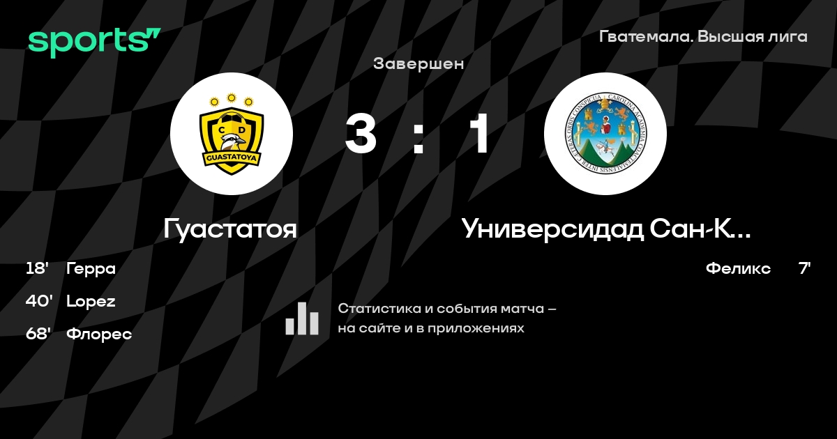 | 9 | Универсидад Сан-Карлос | 22 | 8 | 5 | 9 | 32 | 29 | +3 | 29 | ||