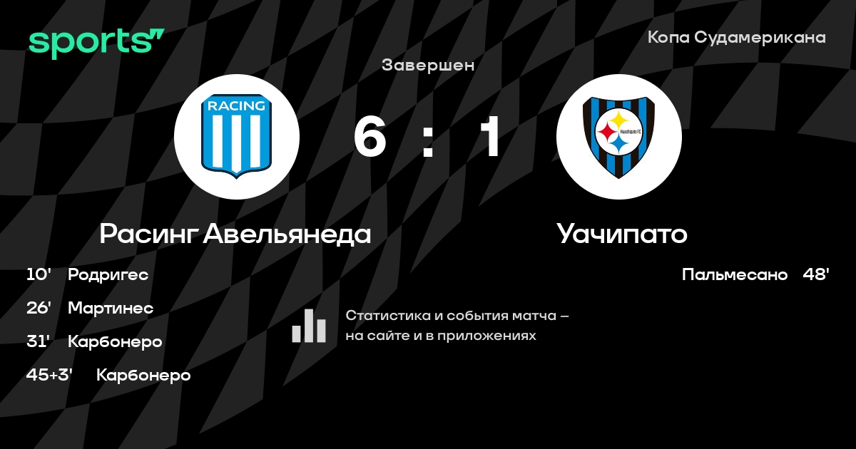Результат прошлой игры в турнире «Копа Судамерикана»: Уачипато – Расинг Авельянеда 0:2. Расинг Авельянеда побеждает в 3 последних матчах в рамках турнира «Копа Судамерикана». В 7 последних матчах в турнире «Копа Судамерикана» Расинг Авельянеда обязательно забивает. Расинг Авельянеда не пропускает в 3 последних матчах в турнире «Копа Судамерикана». В последних 5 играх Расинг Авельянеда забивает 5 голов. В последних 5 играх Расинг Авельянеда пропускает 2 голов.