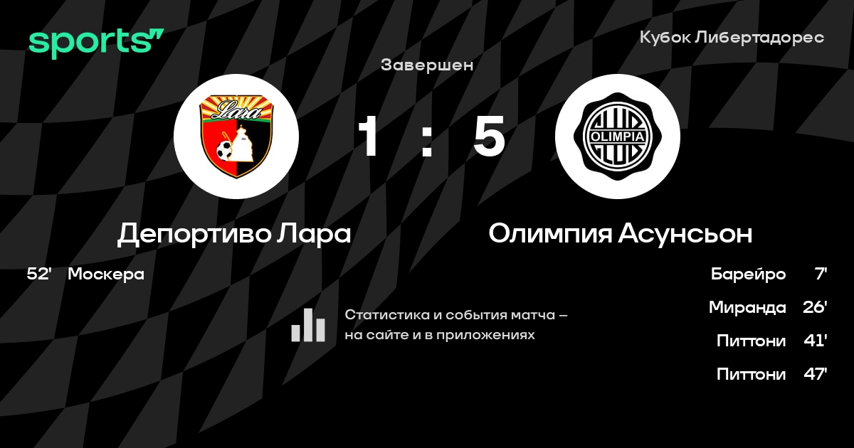 Трансляция Депортиво Лара - Олимпия Асунсьон
