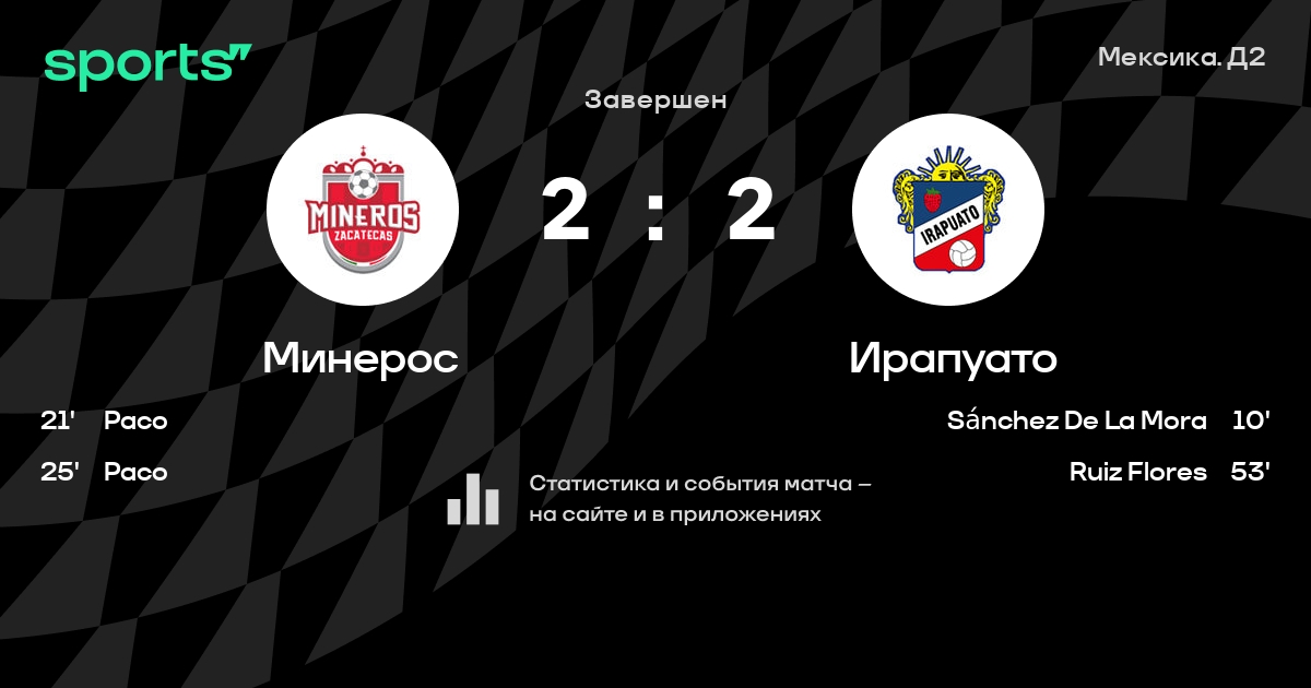 Результат прошлой игры в турнире «Первая лига»: Коррекаминос – Минерос 0:2. После 13 туров Минерос набирает 20 очков и занимает 5 место в турнире. Лучший бомбардир команды – Луис Расо: он забил 4 в 8 матчах. В 7 последних матчах в турнире «Первая лига» Минерос обязательно забивает. В последних 5 играх Минерос забивает 10 голов. В последних 5 играх Минерос пропускает 8 голов.