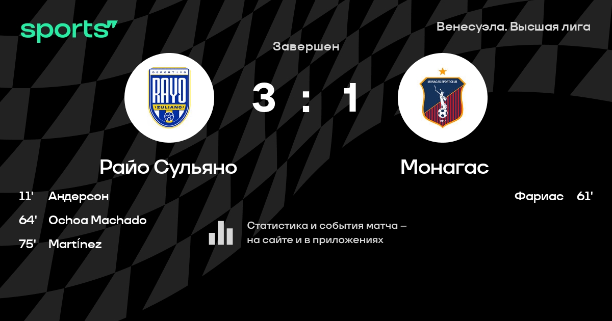 Райо Сульяно – Монагас: Райо Сульяно забивает в 5 последних матчах против этого соперника