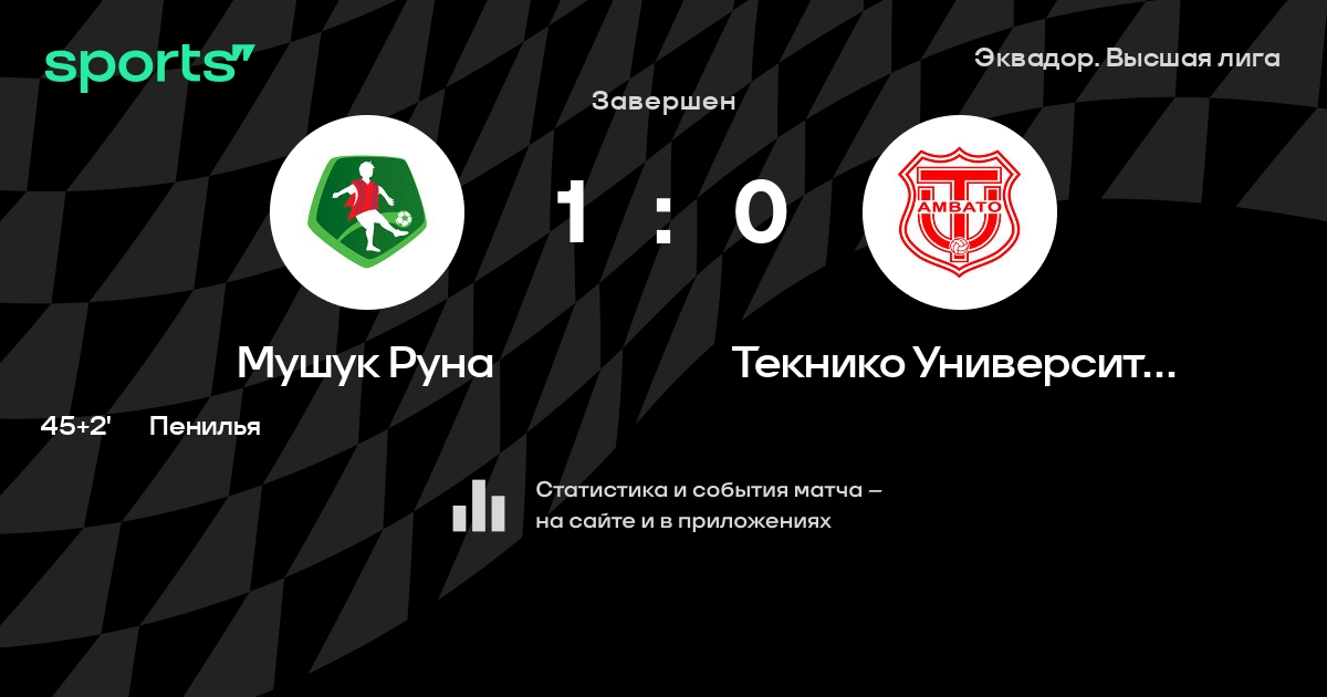 Результат прошлой игры в турнире «Серия A»: Манта – Мушук Руна 3:0. После 34 туров Мушук Руна набирает 32 очков и занимает 3 место в турнире. Лучший бомбардир команды – Кристиан Пенилья: он забил 9 в 41 матчах. Мушук Руна не может выиграть в 3 последних матчах в рамках турнира «Серия A». В последних 5 играх Мушук Руна забивает 8 голов. В последних 5 играх Мушук Руна пропускает 5 голов.