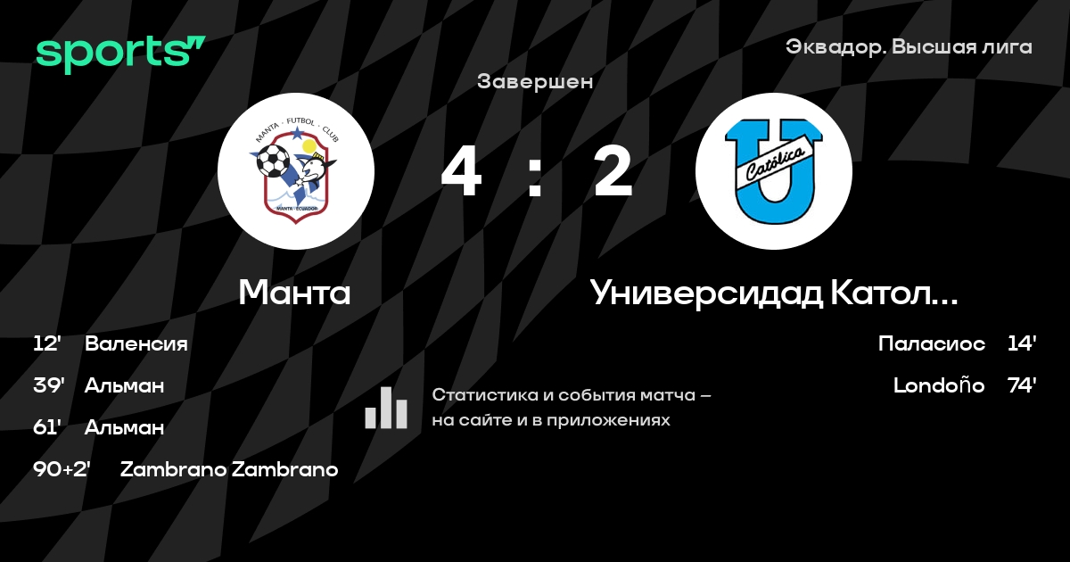 Манта – Универсидад Католика Кито: Универсидад Католика Кито забивает в 19 последних матчах против этого соперника