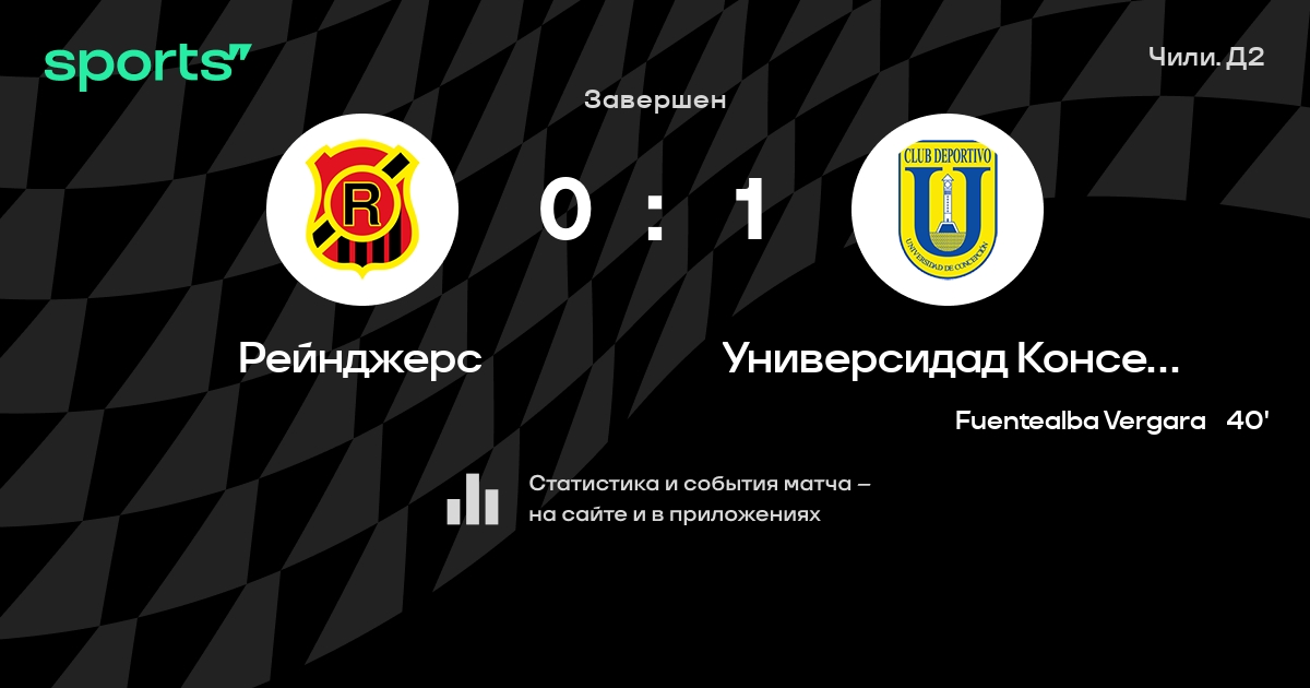 Результат прошлой игры в турнире «Примера B»: Сантьяго Уондерерс – Рейнджерс 0:0. После 23 туров Рейнджерс набирает 30 очков и занимает 9 место в турнире. Лучший бомбардир команды – Исаак Диас: он забил 10 в 19 матчах. Рейнджерс не проигрывает в 4 последних матчах в рамках турнира «Примера B». Универсидад Консепсьон имеет в активе больше всех побед в турнире – 12. Рейнджерс не пропускает в 4 последних матчах в турнире «Примера B». В последних 5 играх Рейнджерс забивает 2 голов. В последних 5 играх Рейнджерс пропускает 4 голов.