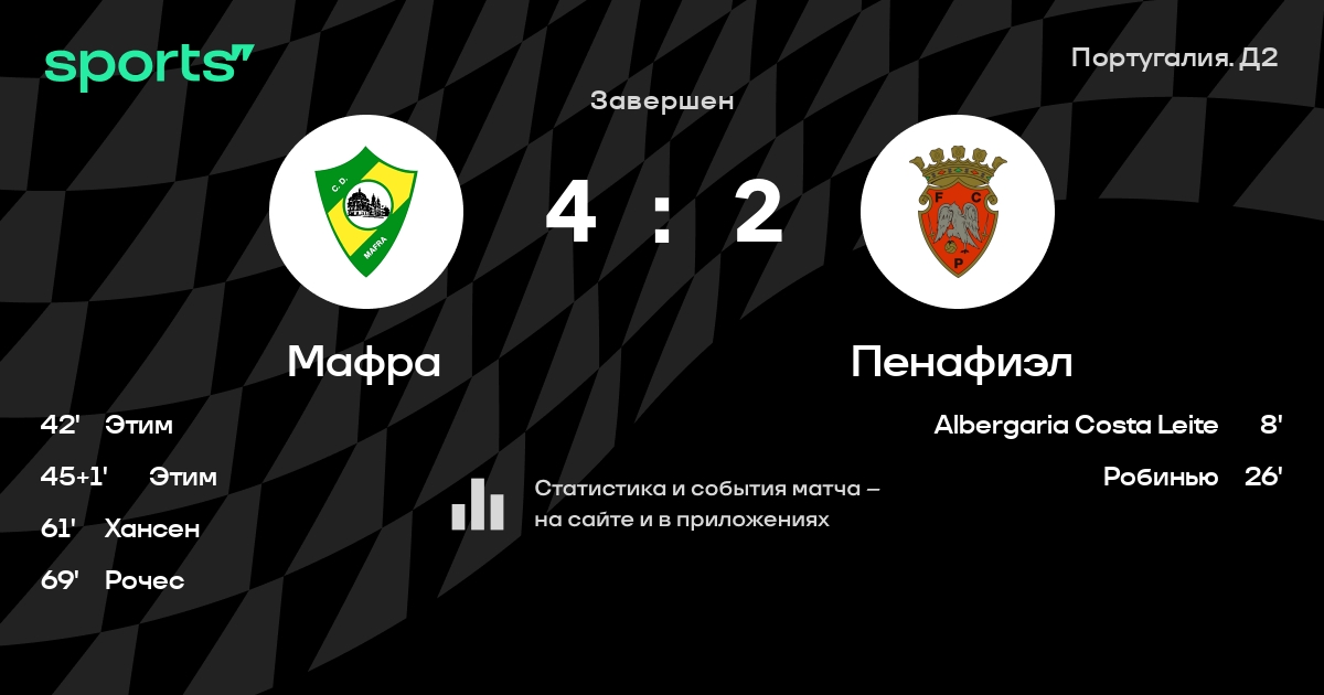 Мафра – Пенафиэл: Пенафиэл не проигрывает в 6 из 8 последних матчей против этого соперника