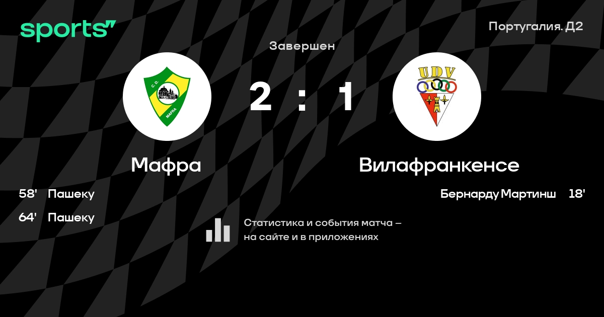 Мафра – Вилафранкенсе: Вилафранкенсе не проигрывает в 5 из 6 последних матчей против этого соперника в турнире «Сегунда»