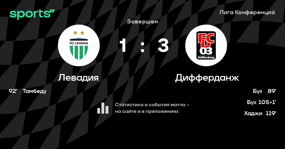 Результат прошлой игры в турнире «Лига Конференций»: Дифферданж – Левадия 2:3. Левадия не проигрывает в 3 последних матчах в рамках турнира «Лига Конференций». В 3 последних матчах в турнире «Лига Конференций» Левадия обязательно забивает. В последних 5 играх Левадия забивает 11 голов. В последних 5 играх Левадия пропускает 4 голов.