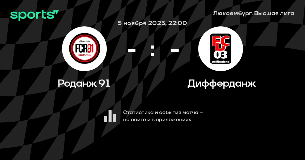 Роданж 91 – Дифферданж: Дифферданж забивает в 9 из 10 последних матчей против этого соперника