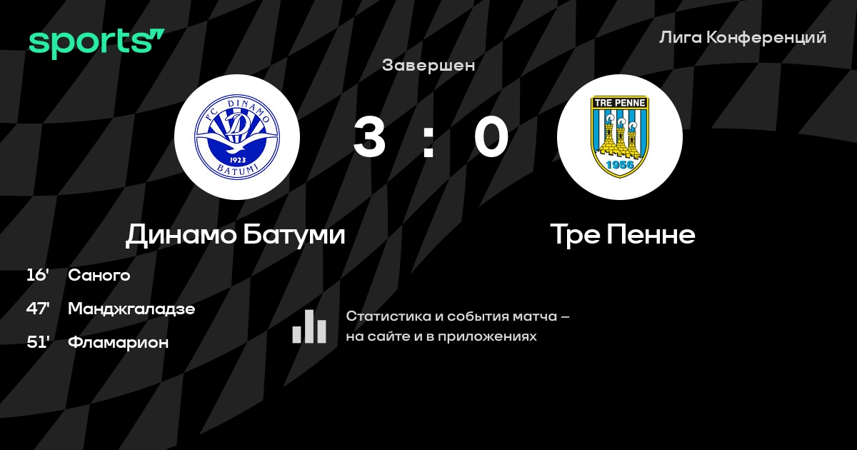 Трансляция Динамо Батуми - Тре Пенне