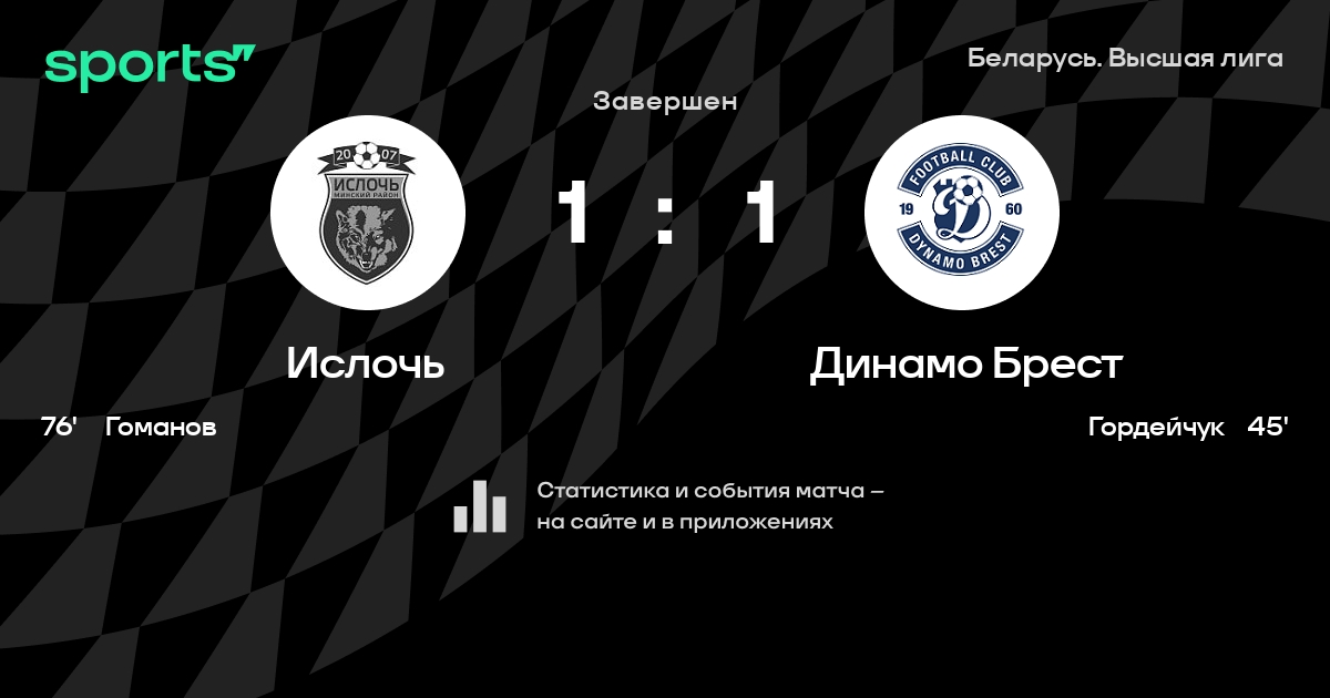 Чемпионат Беларуси: шансы Ислочь и Динамо Брест победу в матче 26-го тура чемпионата Беларуси