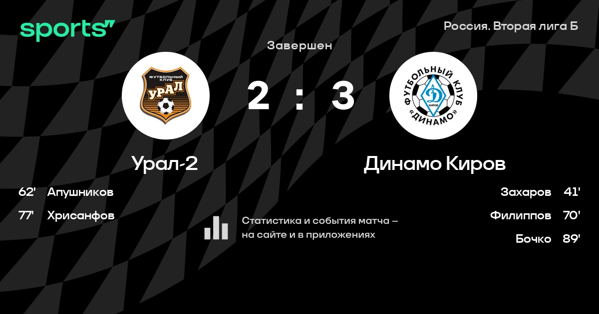 Результат прошлой игры в турнире «Вторая лига»: Динамо Киров – Уралец-ТС 3:1. После 24 туров Динамо Киров набирает 51 очков и занимает 1 место в турнире. Лучший бомбардир команды – I. Kozhukhar: он забил 12 в 23 матчах. Динамо Киров не проигрывает в 8 последних матчах в рамках турнира «Вторая лига». Динамо Киров имеет лучшую разницу мячей в турнире – 31. В последних 5 играх Динамо Киров забивает 10 голов. В последних 5 играх Динамо Киров пропускает 4 голов.