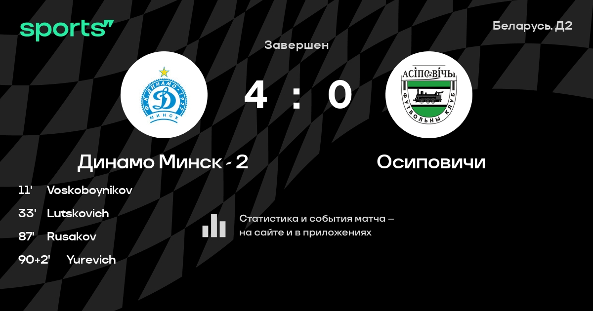 Динамо Минск - 2 – Осиповичи: Динамо Минск - 2 побеждает в 3 последних очных матчах