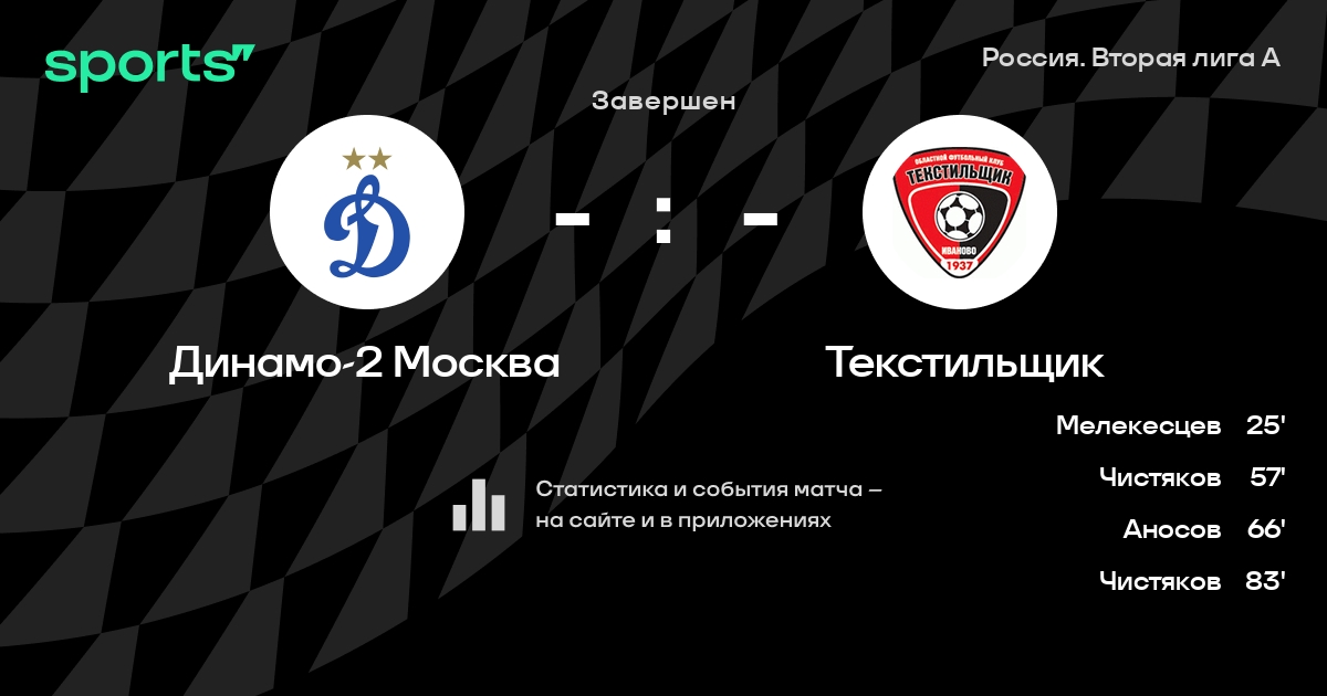 Динамо-2 Москва – Текстильщик: Текстильщик забивает в 7 последних матчах против этого соперника