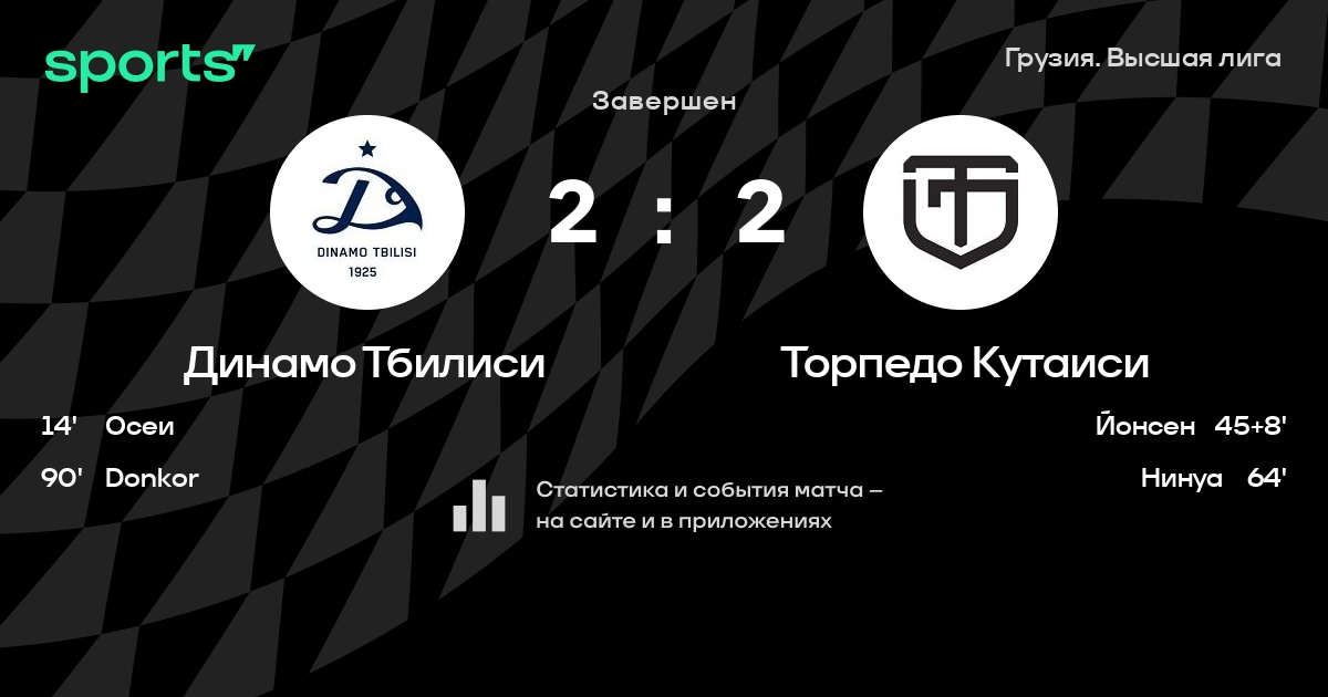 Динамо Тбилиси – Торпедо Кутаиси: Торпедо Кутаиси не проигрывает в 5 из 7 последних матчей против этого соперника