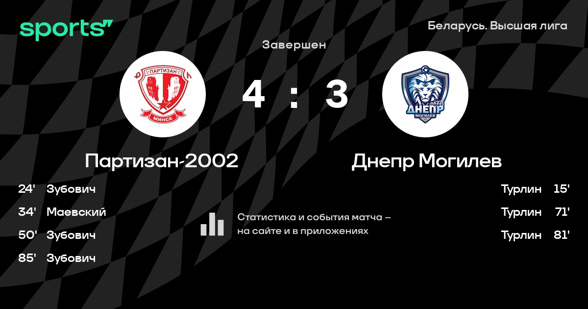 Партизан-2002 – Днепр Могилев: коэффициенты