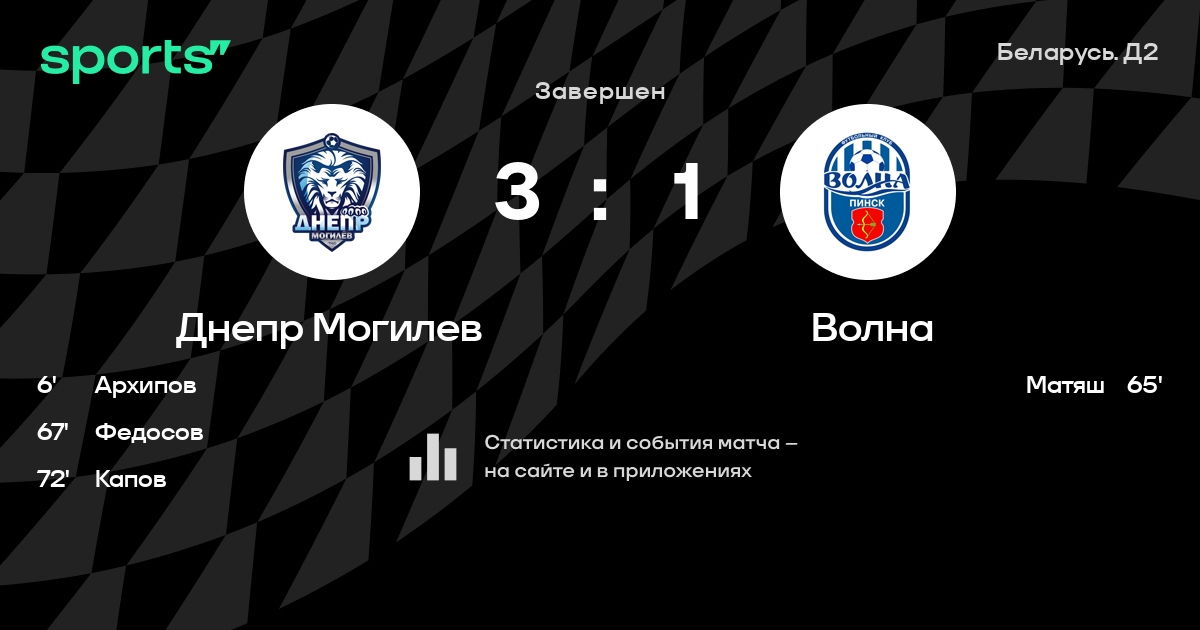 Результат прошлой игры в турнире «Первая лига»: Гомель-2 – Днепр Могилев 2:3. После 23 туров Днепр Могилев набирает 50 очков и занимает 1 место в турнире. Лучший бомбардир команды – Артем Петренко: он забил 10 в 22 матчах. Днепр Могилев имеет в активе больше всех побед в турнире – 15. Днепр Могилев пропускает в 3 последних матчах в турнире «Первая лига». В последних 5 играх Днепр Могилев забивает 11 голов. В последних 5 играх Днепр Могилев пропускает 8 голов.