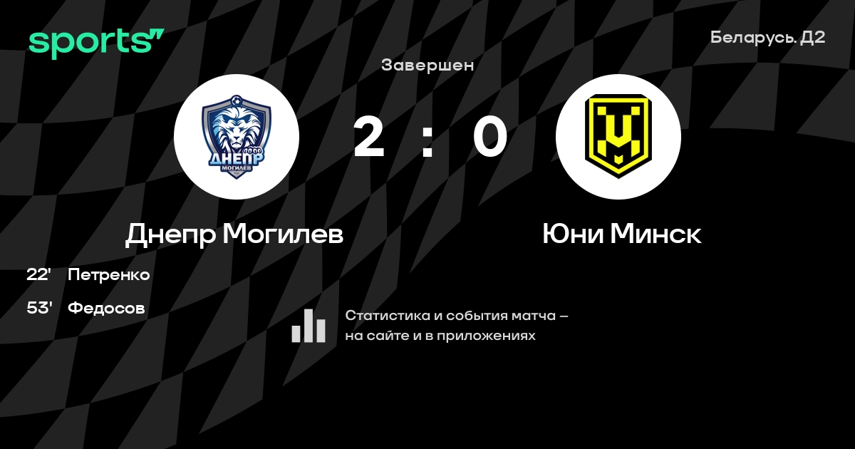 Результат прошлой игры в турнире «Первая лига»: Осиповичи – Днепр Могилев 0:2. После 19 туров Днепр Могилев набирает 41 очков и занимает 1 место в турнире. Лучший бомбардир команды – Артем Петренко: он забил 9 в 18 матчах. Днепр Могилев не проигрывает в 8 последних матчах в рамках турнира «Первая лига». Днепр Могилев имеет в активе больше всех побед в турнире – 12. В 16 последних матчах в турнире «Первая лига» Днепр Могилев обязательно забивает. В последних 5 играх Днепр Могилев забивает 6 голов. В последних 5 играх Днепр Могилев пропускает 3 голов.