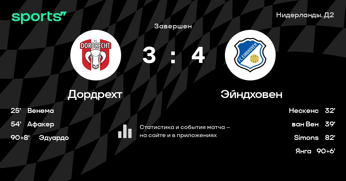 Дордрехт – Эйндховен: Эйндховен не проигрывает в 5 последних матчах против этого соперника