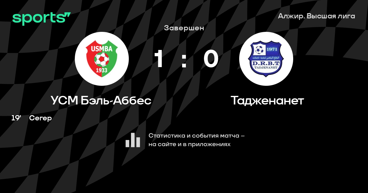 УСМ Бэль-Аббес – Тадженанет: УСМ Бэль-Аббес не проигрывает в 5 из 6 последних матчей против этого соперника