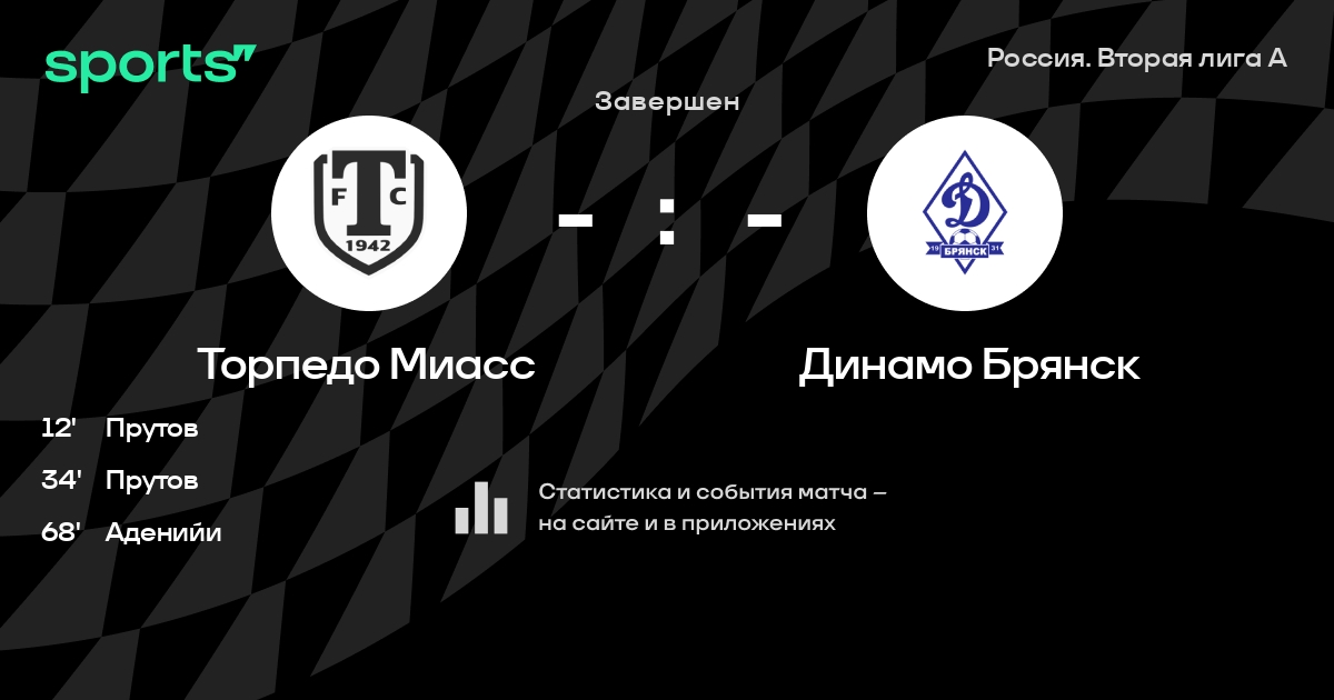Результат прошлой игры в турнире «Россия. Вторая лига А»: Динамо Брянск – Волга Ульяновск 0:0. После 10 туров Динамо Брянск набирает 11 очков и занимает 7 место в турнире. Лучший бомбардир команды – Владислав Дрогунов: он забил 3 в 10 матчах. Динамо Брянск не проигрывает в 6 последних матчах в рамках турнира «Россия. Вторая лига А». В последних 5 играх Динамо Брянск забивает 5 голов. В последних 5 играх Динамо Брянск пропускает 5 голов.