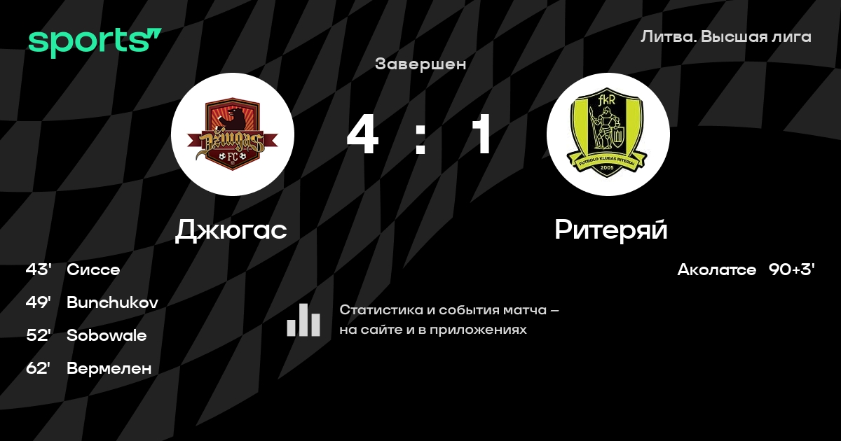 Джюгас – Ритеряй: Джюгас побеждает в 3 последних очных матчах