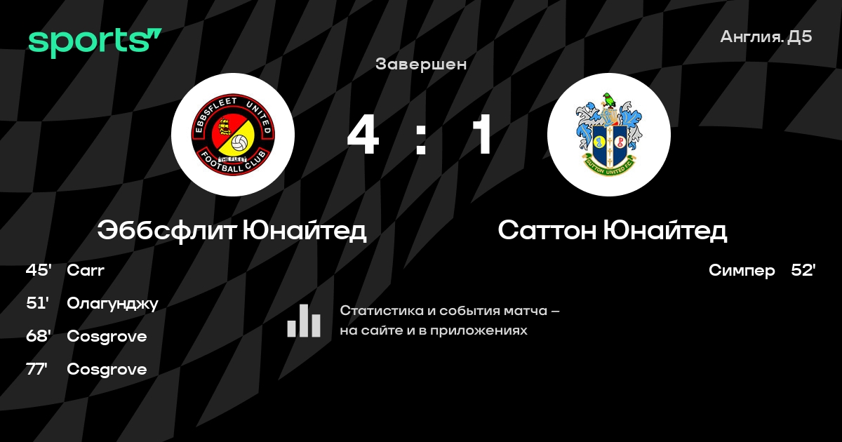 Эббсфлит Юнайтед – Саттон Юнайтед: Эббсфлит Юнайтед забивает в 4 последних матчах против этого соперника