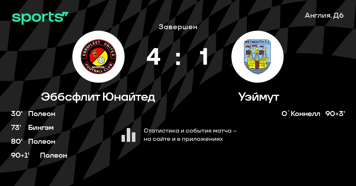 Эббсфлит Юнайтед – Уэймут: Эббсфлит Юнайтед побеждает в 5 последних очных матчах