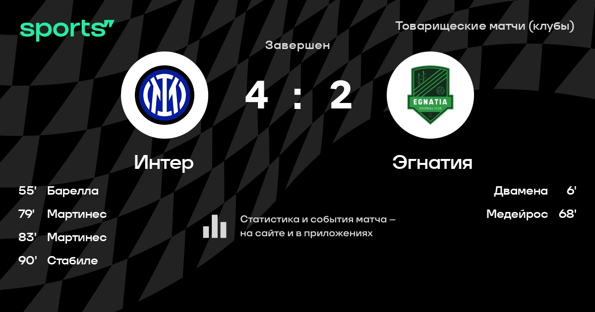 Зоммер - Бастони, де Врей, Дармиан - Димарко, Чалханоглу, Барелла, Мхитарян, Думфрис - Мартинес, М. ТюрамЗапасные: Аудеро, Ди Дженнаро, Биссек, Лазаро, Стабиле, Аслани, Куадрадо, Фраттези, Сенси, Станкович, Корреа, Сарр