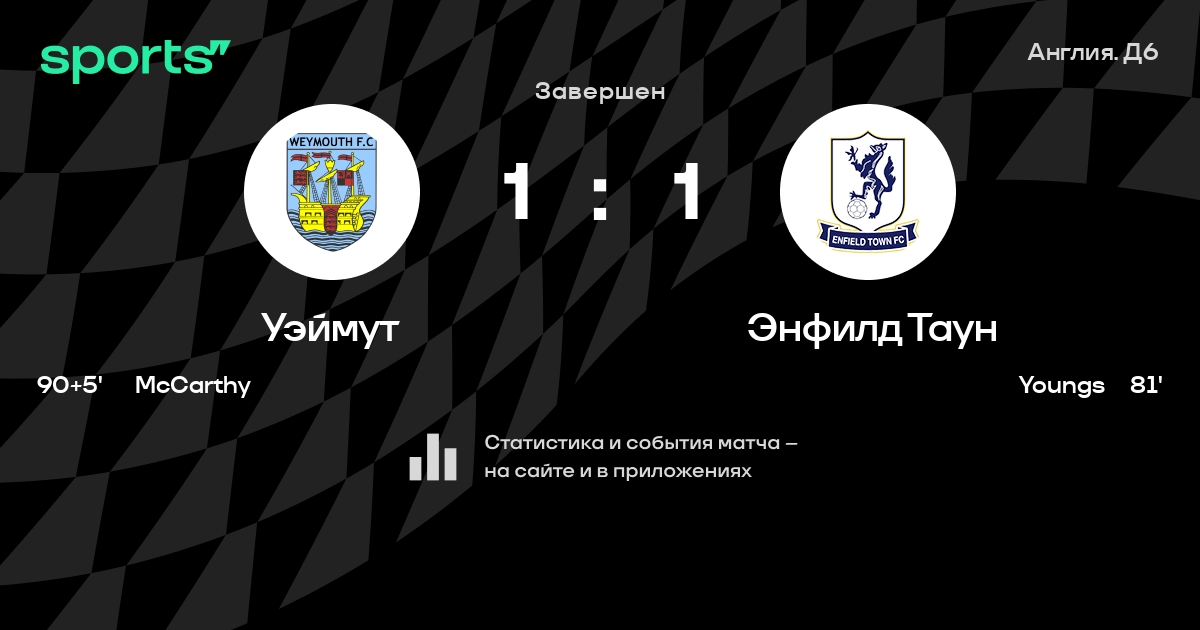 Результат прошлой игры в турнире «Д6. Национальная конференция»: Уэймут – Мэйдстон Юнайтед 0:1. После 27 туров Уэймут набирает 15 очков и занимает 24 место в турнире. Лучший бомбардир команды – Брэндон Гудшип: он забил 5 в 15 матчах. Уэймут проигрывает в 4 последних матчах в рамках турнира «Д6. Национальная конференция». Уэймут пропускает в 4 последних матчах в турнире «Д6. Национальная конференция». В последних 5 играх Уэймут забивает 4 голов. В последних 5 играх Уэймут пропускает 9 голов.