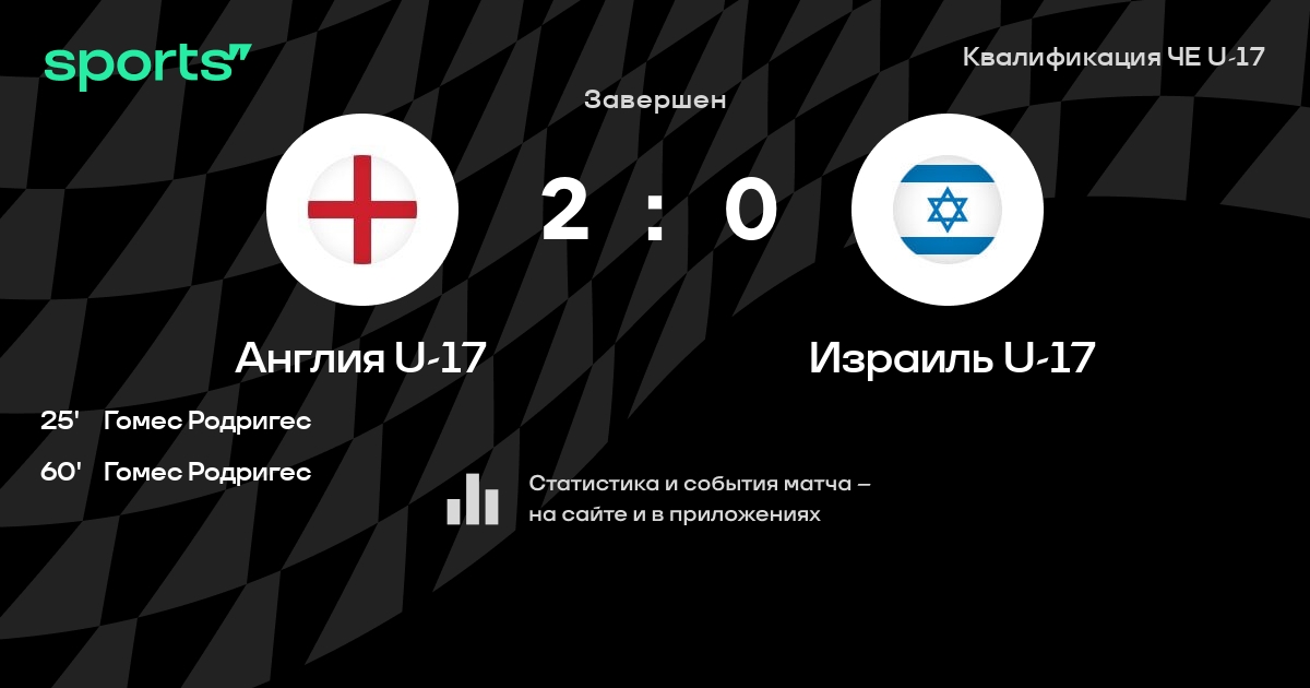Трансляция Англия U-17 - Израиль U-17