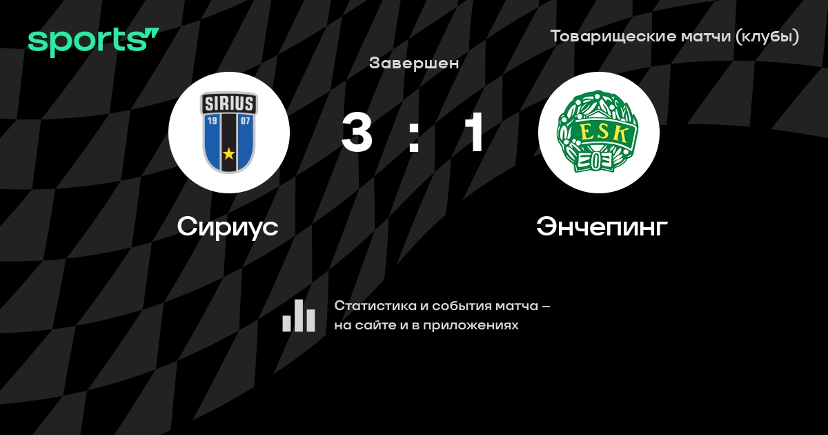 Результат прошлой игры в турнире «Товарищеские матчи (клубы)»: Норчепинг – Сириус 4:5. В последних 5 играх Сириус забивает 8 голов. В последних 5 играх Сириус пропускает 13 голов.