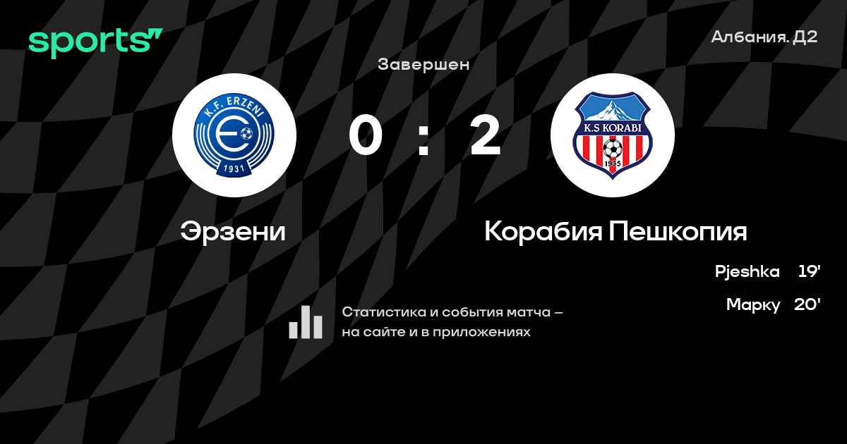 Эрзени – Корабия Пешкопия: Корабия Пешкопия не проигрывает в 9 из 11 последних матчей против этого соперника