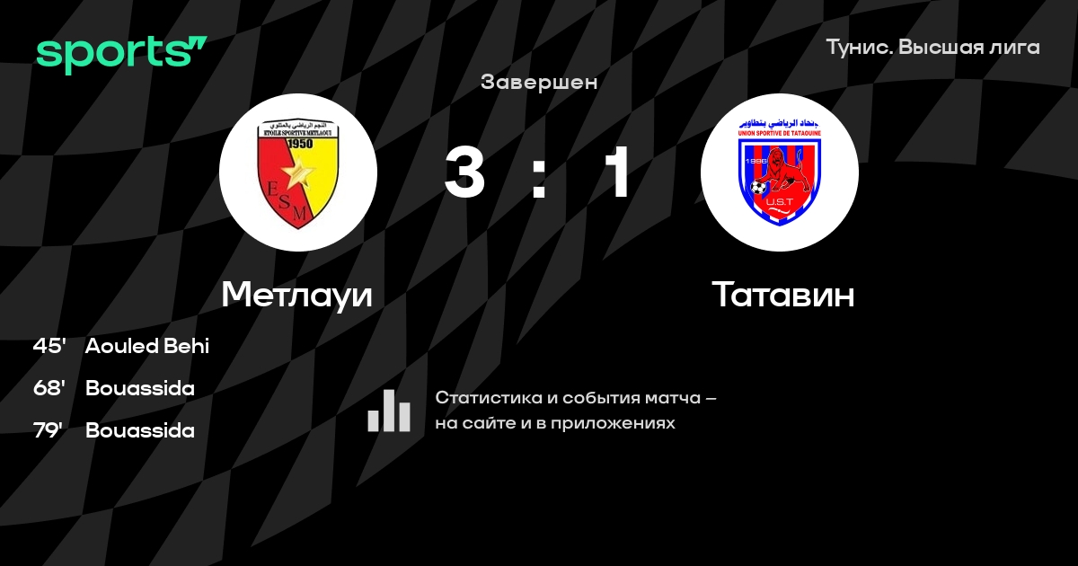 Метлауи – Татавин: Метлауи не проигрывает в 10 последних матчах против этого соперника