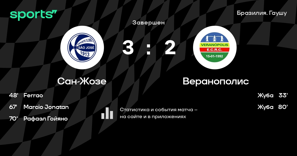 Рейналдо - Correia dos Santos, Жадсон, Bueno Bovi, Andrade - Lusa, Кунья, Эвертон Диас - Масена, Жуба, Тулио РенанЗапасные: Гавинески, Dagostini, de Campos Gonçalves, Niza de Oliveira, Матеус Кунья, Жуниньо, Патрик