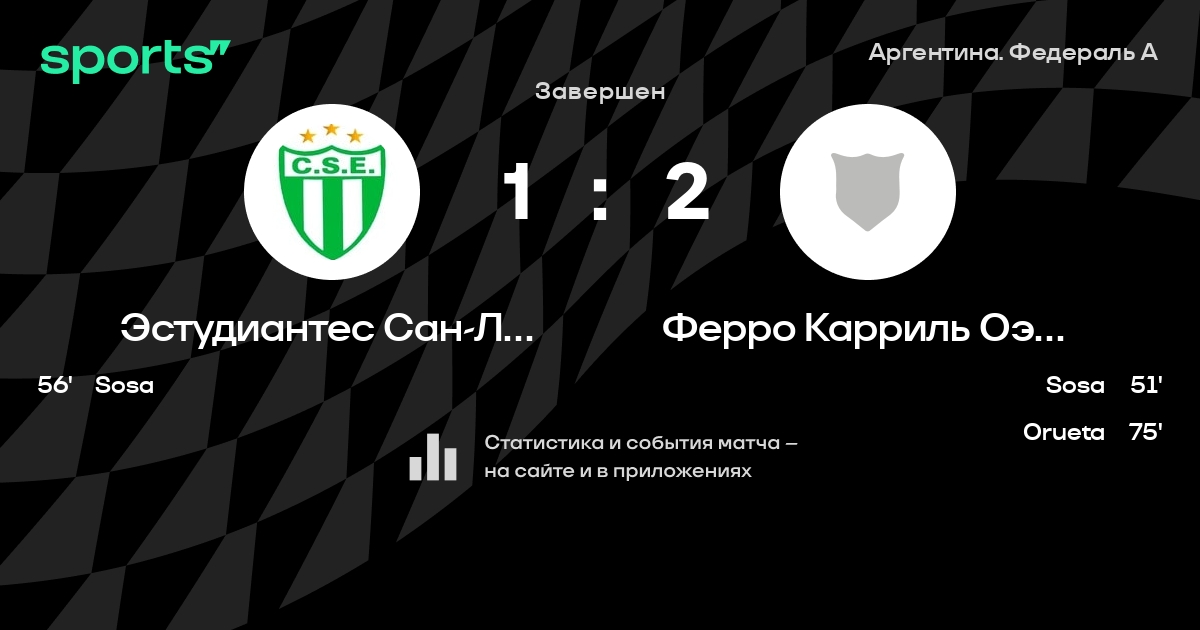 Трансляция Эстудиантес Сан-Луис - Ферро Карриль Оэсте ЛП