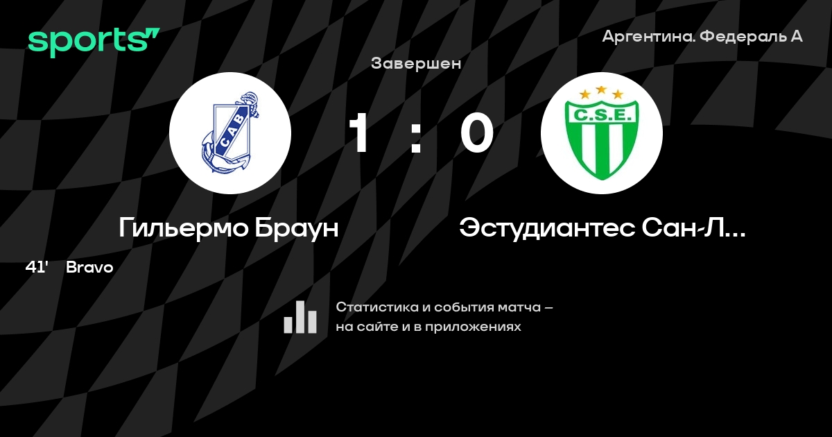 Гильермо Браун – Эстудиантес Сан-Луис: Гильермо Браун не проигрывает в 5 из 7 последних матчей против этого соперника
