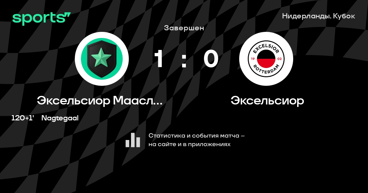 Результат прошлой игры в турнире «Кубок»: HZVV – Эксельсиор Мааслуи 1:5. В 6 последних матчах в турнире «Кубок» Эксельсиор Мааслуи обязательно забивает. Эксельсиор Мааслуи пропускает в 4 последних матчах в турнире «Кубок». В последних 5 играх Эксельсиор Мааслуи забивает 10 голов. В последних 5 играх Эксельсиор Мааслуи пропускает 10 голов.