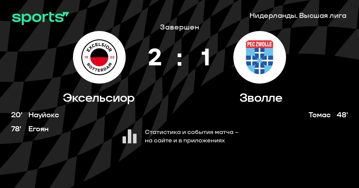 Результат прошлой игры в турнире «Эредивизи Нидерланды»: Эксельсиор – Гронинген 0:2. После 15 туров Эксельсиор набирает 16 очков и занимает 14 место в турнире. Лучший бомбардир команды – Ноа Науйокс: он забил 4 в 12 матчах. В последних 5 играх Эксельсиор забивает 6 голов. В последних 5 играх Эксельсиор пропускает 7 голов.