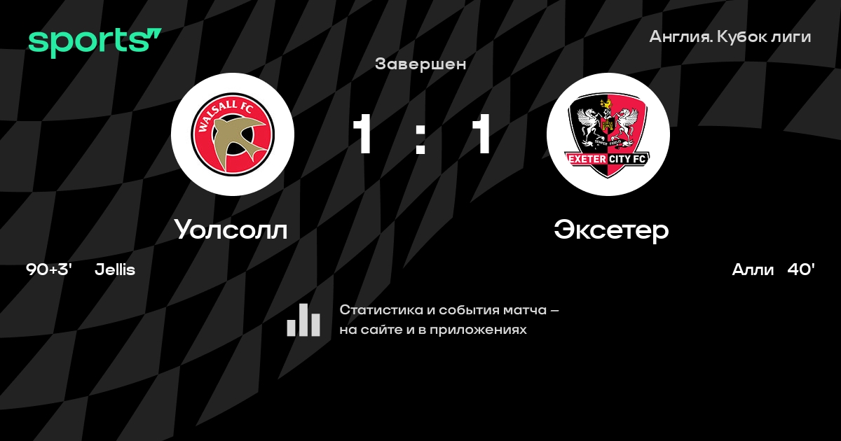 Уолсолл – Эксетер: Эксетер не проигрывает в 6 из 8 последних матчей против этого соперника