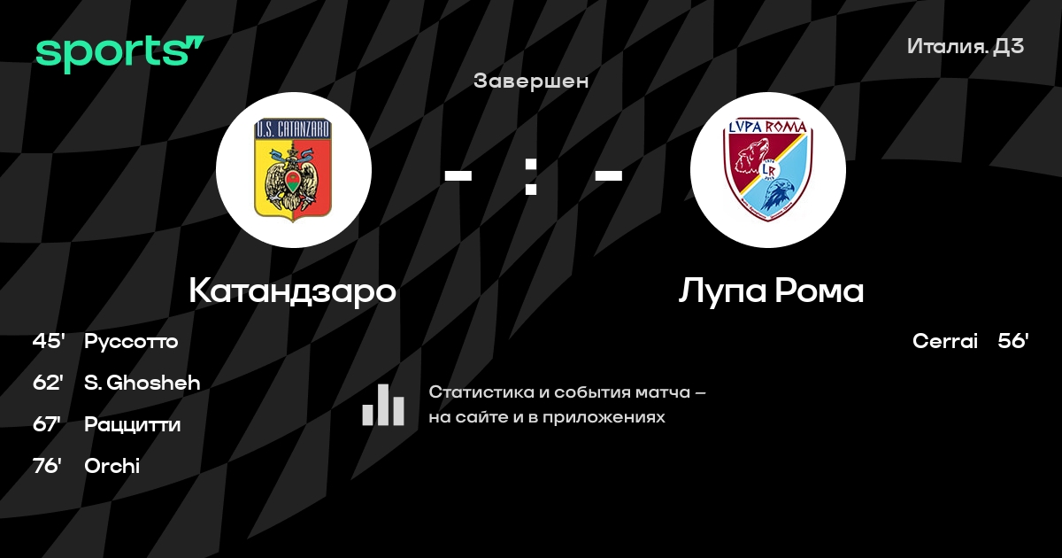 Мигани - Calvarese, Д'Орси, Orchi, Ghosheh, Squillace - Руссотто, Джандонато - Раццитти, Манкузо, МунарЗапасные: Cannizzaro, Benincasa, Даффара, Сарр, Yeboah, Tedesco, Caputa