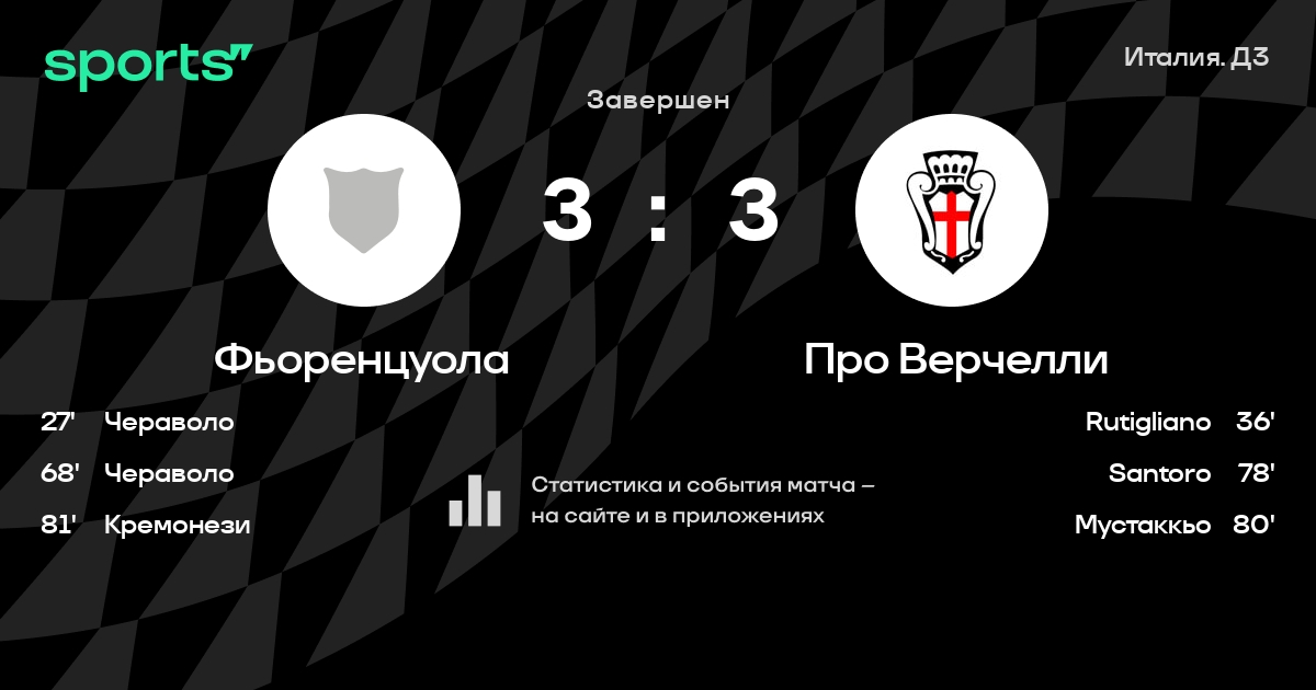 Фьоренцуола – Про Верчелли: Про Верчелли побеждает в 3 последних очных матчах
