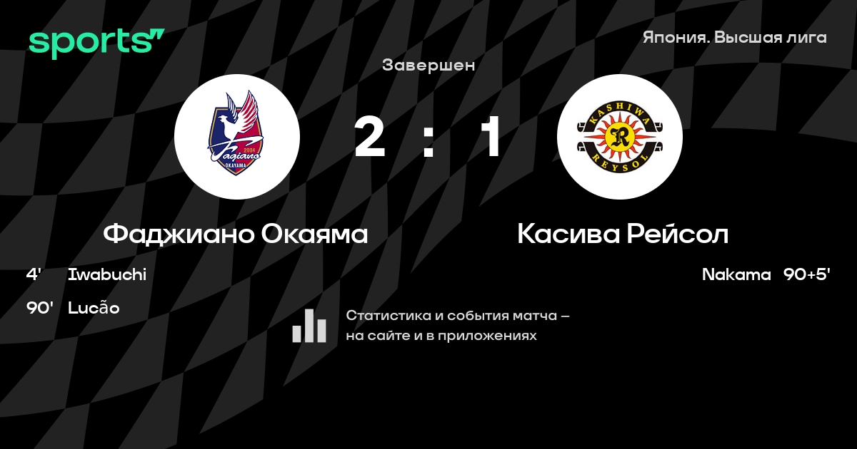 Фаджиано Окаяма – Касива Рейсол: Касива Рейсол не проигрывает в 5 из 6 последних матчей против этого соперника