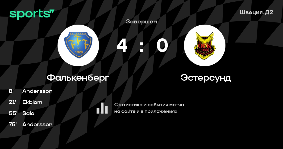 Результат прошлой игры в турнире «Первая лига»: Оддевольд – Фалькенберг 2:2. После 24 туров Фалькенберг набирает 36 очков и занимает 6 место в турнире. Лучший бомбардир команды – Albin Andersson: он забил 10 в 24 матчах. Фалькенберг не проигрывает в 3 последних матчах в рамках турнира «Первая лига». В 5 последних матчах в турнире «Первая лига» Фалькенберг обязательно забивает. В последних 5 играх Фалькенберг забивает 14 голов. В последних 5 играх Фалькенберг пропускает 6 голов.