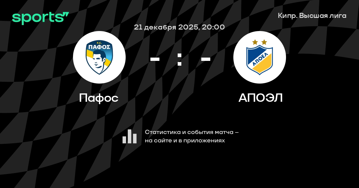 Пафос – АПОЭЛ: АПОЭЛ не проигрывает в 5 из 7 последних матчей против этого соперника в гостях
