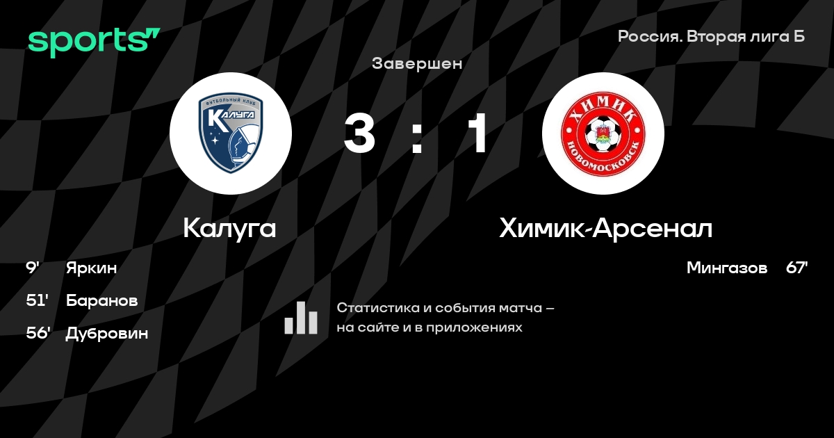 Калуга – Химик-Арсенал: Калуга не проигрывает в 6 из 8 последних матчей против этого соперника в турнире «Россия. Олимп-ПФЛ»